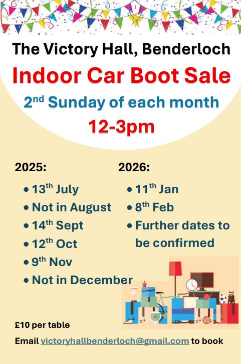 Contact us to book a table, and we will collect your payment on sale day. You can set up from 11am on the day of the sale.